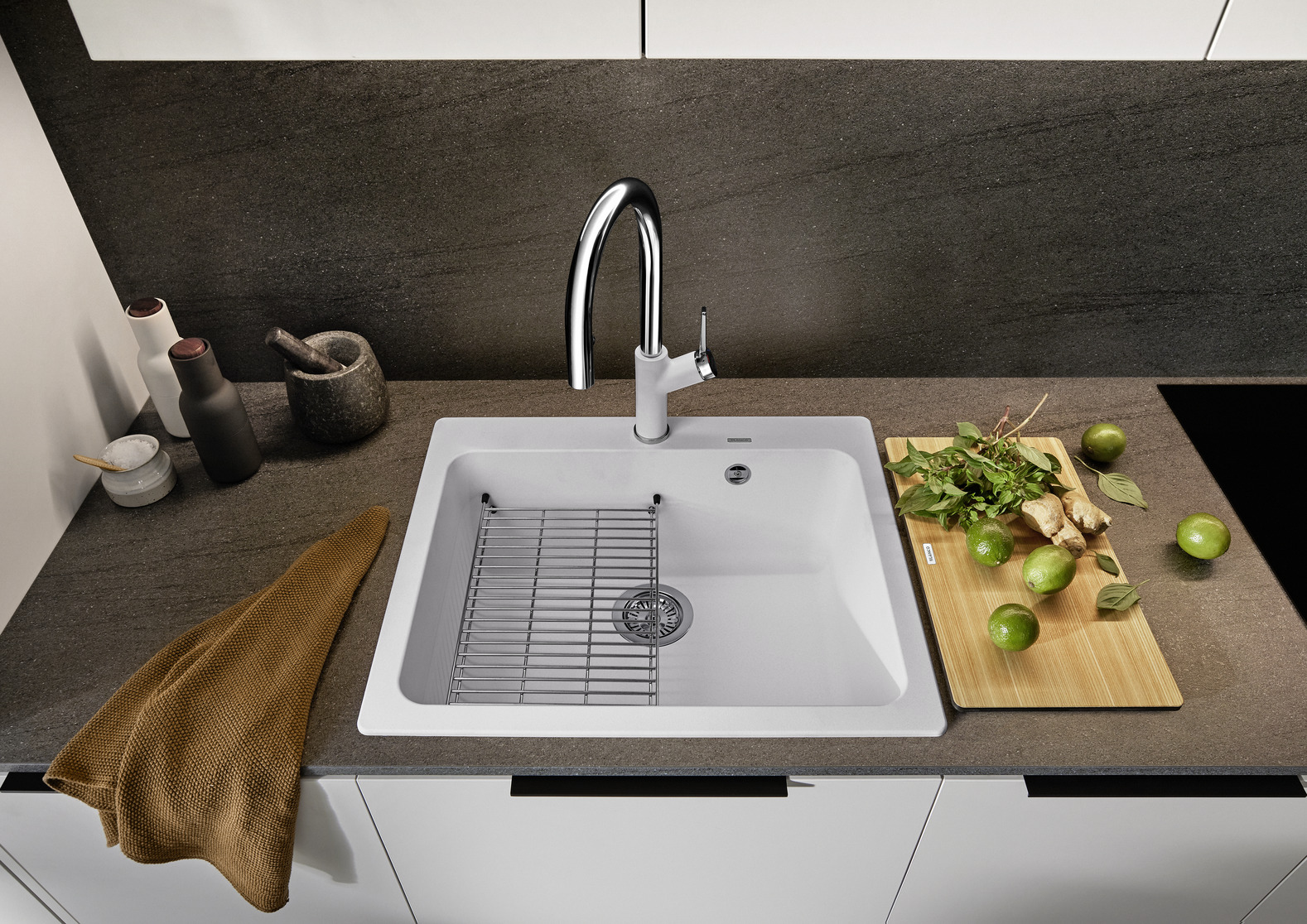 • Antraciet spoelbakken