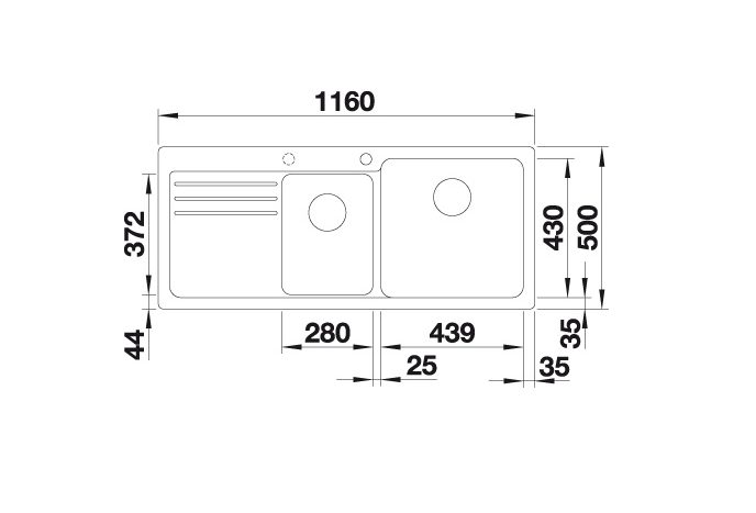 Ruime kraanrichel met plaats voor zowel keukenkraan als zeepdispenser