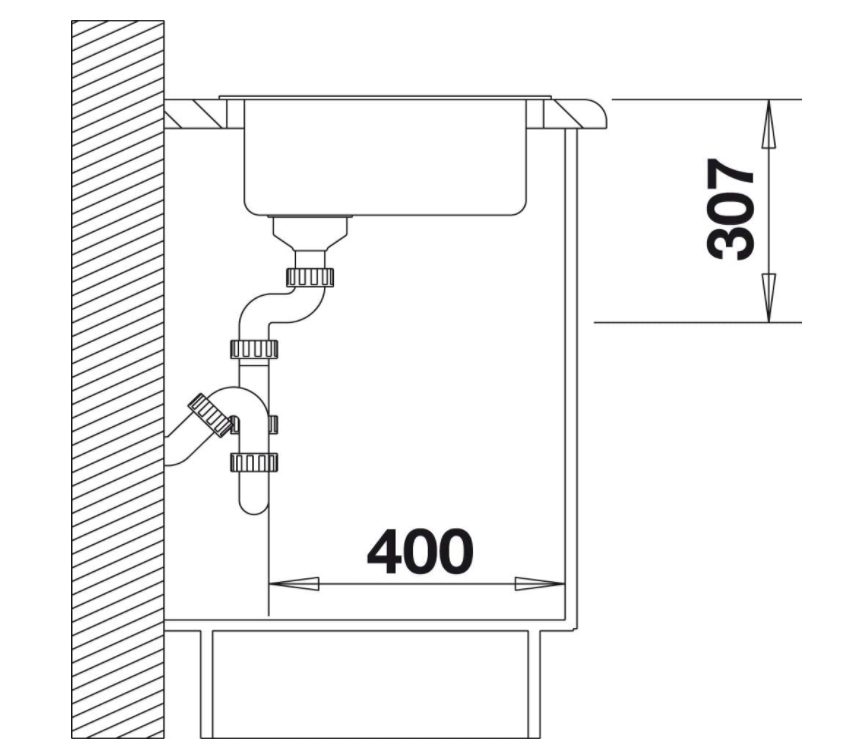 Inclusief plaatsbesparend afloopgarnituur, korfventiel 3 ½”