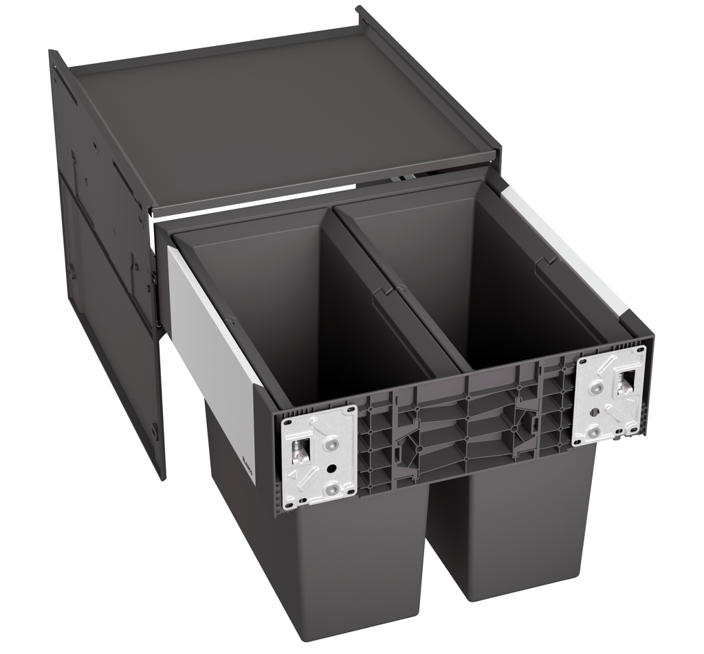 Inclusief uittreksysteem voor bevestiging aan front, systeemafdekking, 2 x 16 l emmer