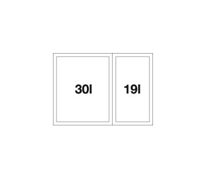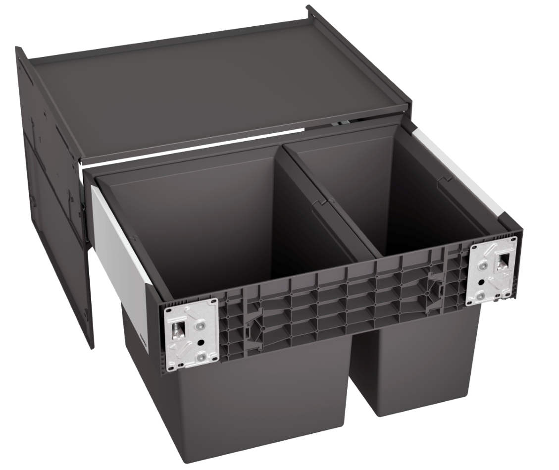 Inclusief uittreksysteem voor bevestiging aan front, systeemafdekking, 1 x 30 l en 1 x 19 l emmer