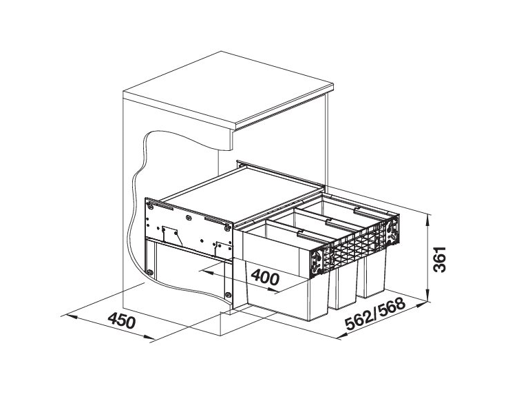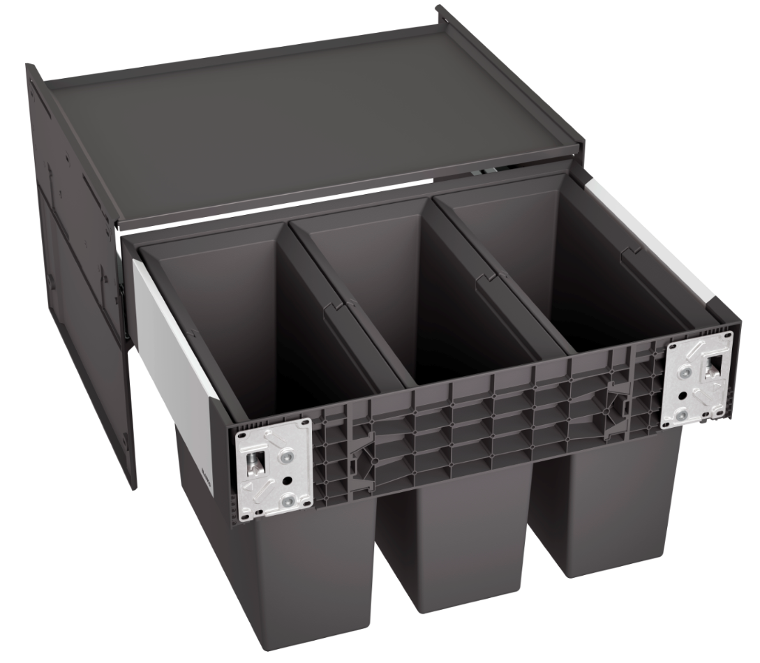Inclusief uittreksysteem voor bevestiging aan front, systeemafdekking, 1 x 30 l en 2 x 8 l emmer, 1 x emmerdeksel 8 l