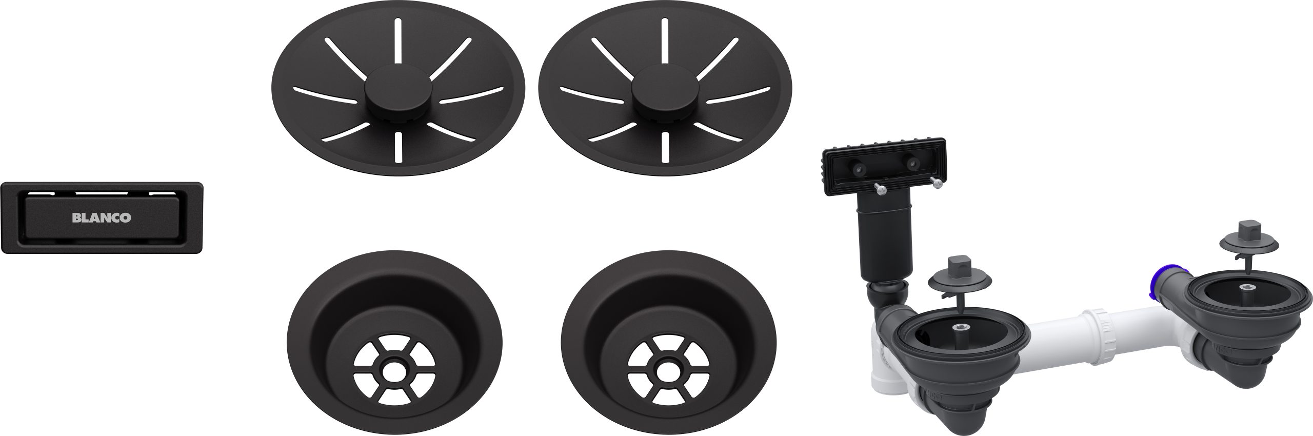 Blanco Set 207438 Mat Zwart Afloopgarnituurset Voor Dubbele Of Anderhalve Spoelbak Complete Set