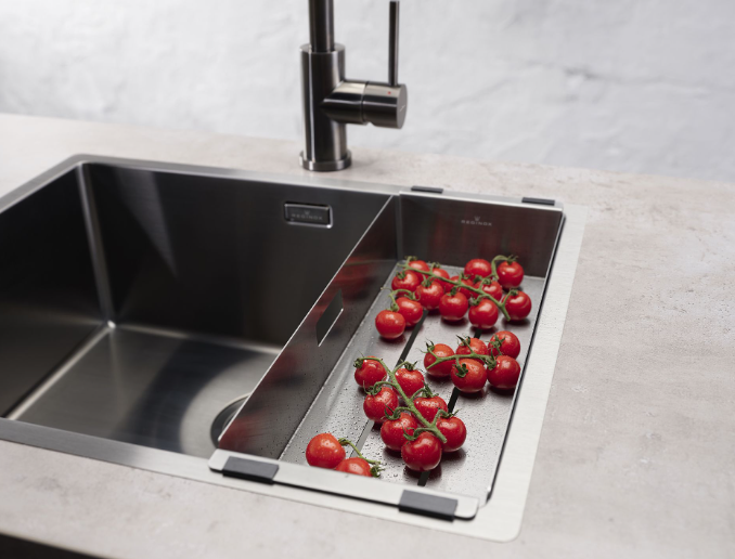 - De snijplank die over de buitenranden van de spoeltafel glijdt, biedt een grote flexibiliteit bij het gebruik van u spoeltafel