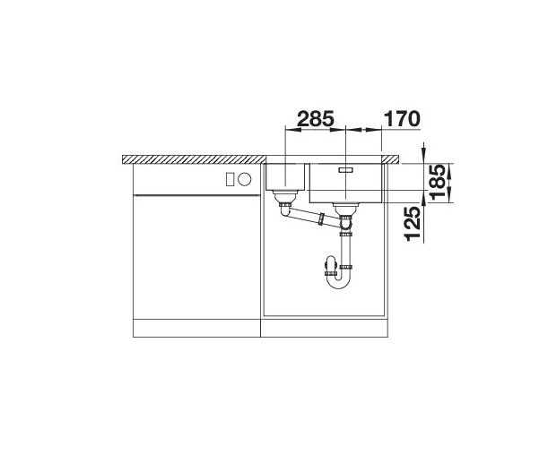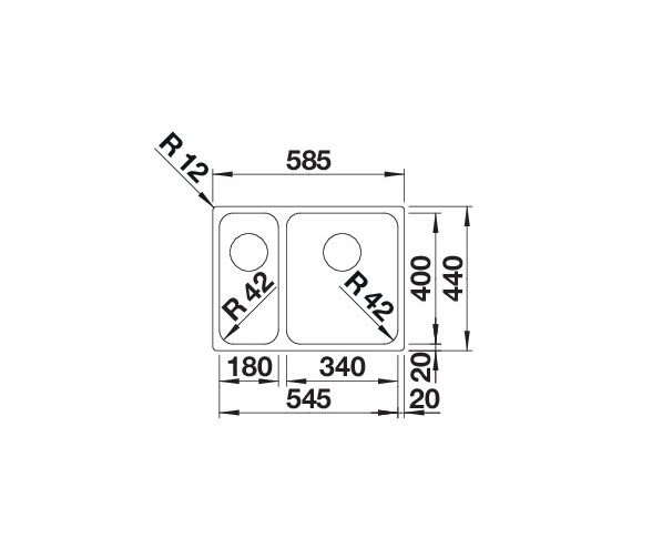 HomeRVS Spoelbak Blanco Solis 340/180-U 526129 Anderhalve Keukenspoelbak Links RVS Onderbouw
