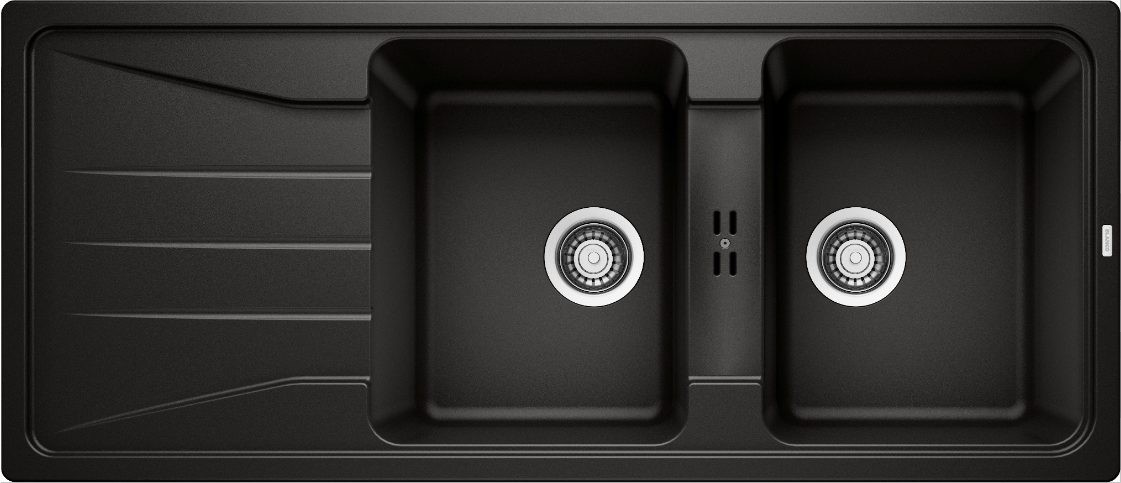 Homezwarte spoelbak Blanco Sona 8 S 525979 Dubbele Keukenspoelbak Silgranit Zwart Omkeerbaar Opbouw