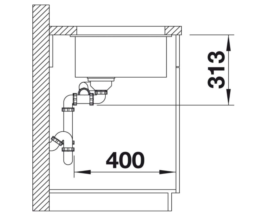 Plaatsbesparend afloopgarnituur, InFino korfventielen 3 ½”, bevestigingsset
