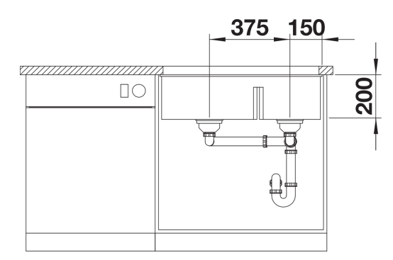 Inclusief afvalset met ruimtebesparende buis, afvalaansluiting, 2 x 3 1/2 ” InFino ™ -mandzeef, bevestigingsset
