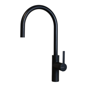 Comfortabele 3 in 1 mengkraan met bedieningshendel voor koud en warm water aan rechterzijde en bedieningshendel voor gefilterd water aan linkse zijde