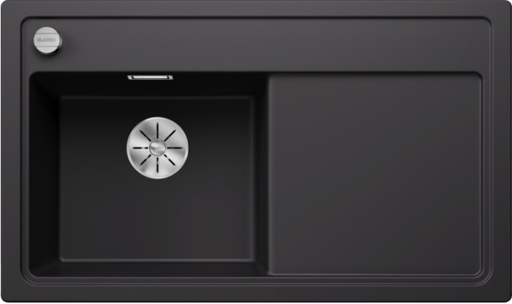 Blanco Zenar 45 S 526037 Enkele Keukenspoelbak Rechts Silgranit Zwart Inclusief Draaiknopbediening Opbouw