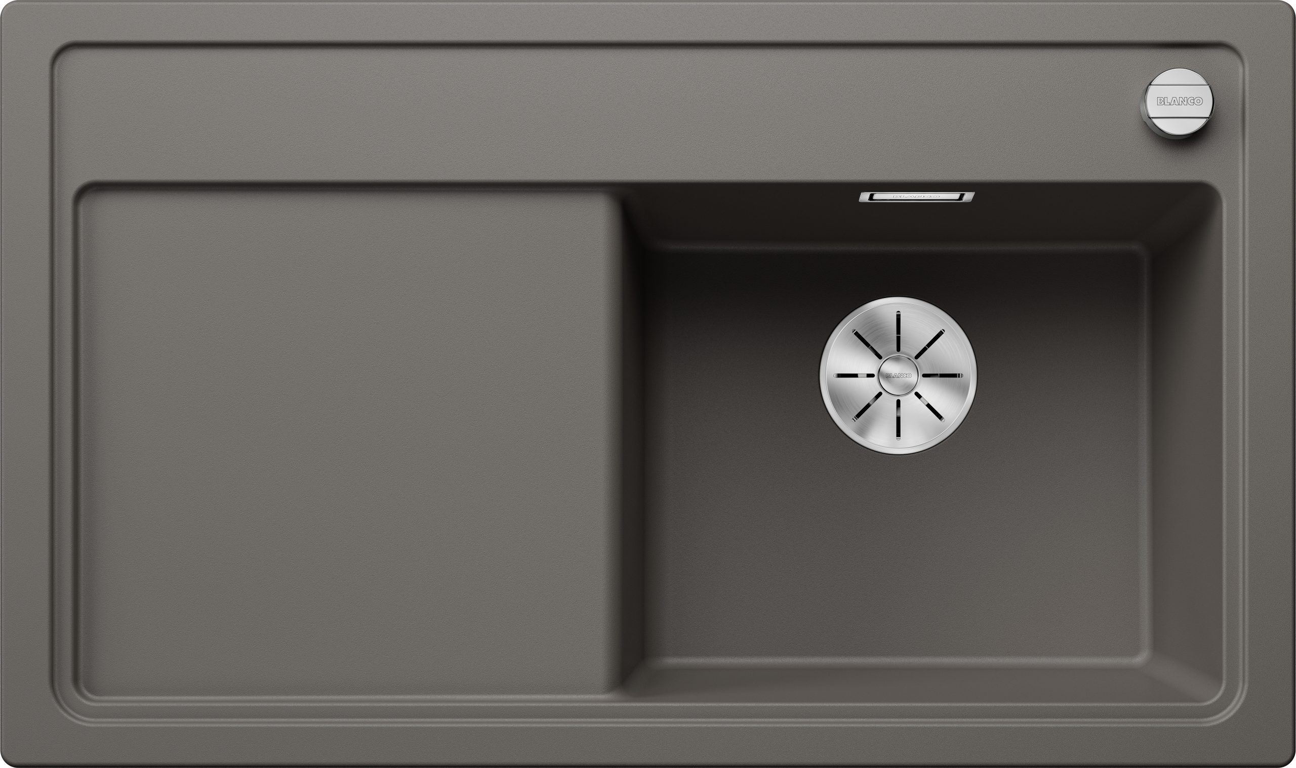 HomeGranieten spoelbakken Blanco Zenar 45-S 527361 Enkele Keukenspoelbak Rechts Silgranit Vulkaangrijs Inclusief Draaiknopbediening Opbouw