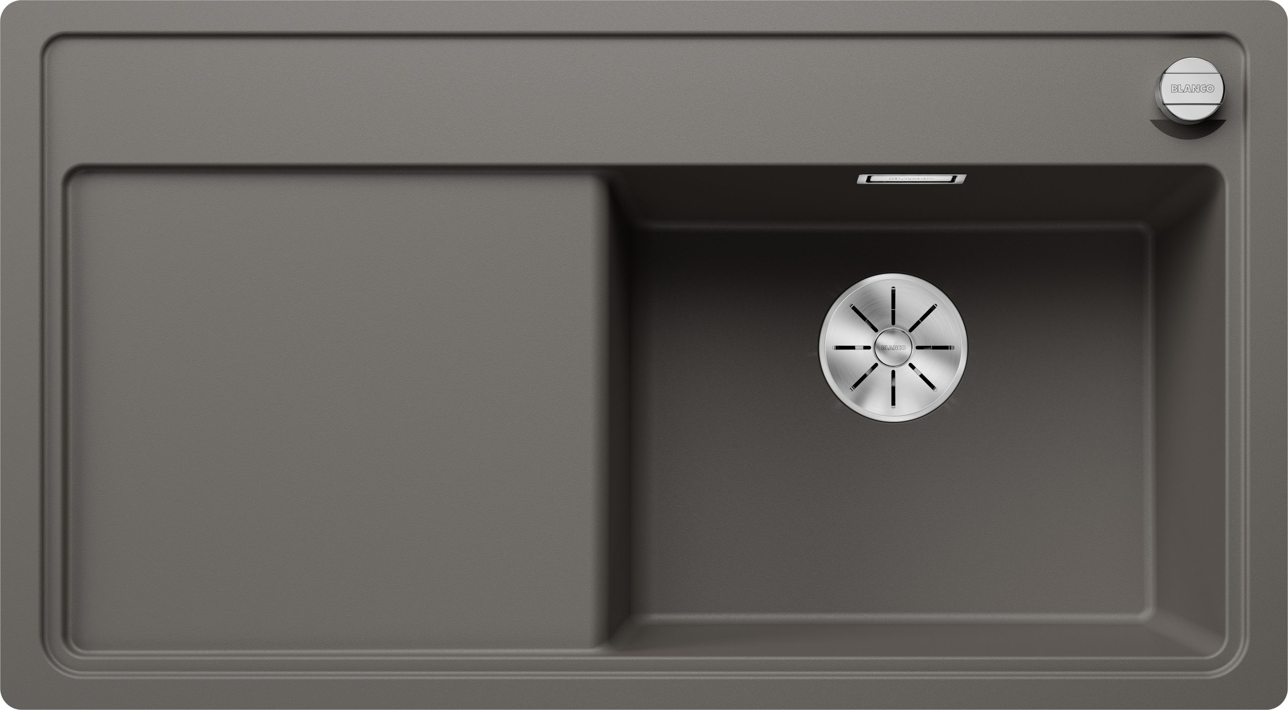 Blanco Zenar 5 S-F 527366 Enkele Keukenspoelbak Rechts Silgranit Vulkaangrijs Inclusief Draaiknopbediening Vlakbouw Of Onderbouw