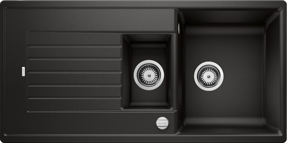 Homezwarte spoelbak Blanco Zia 6 S 526020 Keukenspoelbak Silgranit Zwart Inclusief Draaiknopbediening Omkeerbaar Opbouw