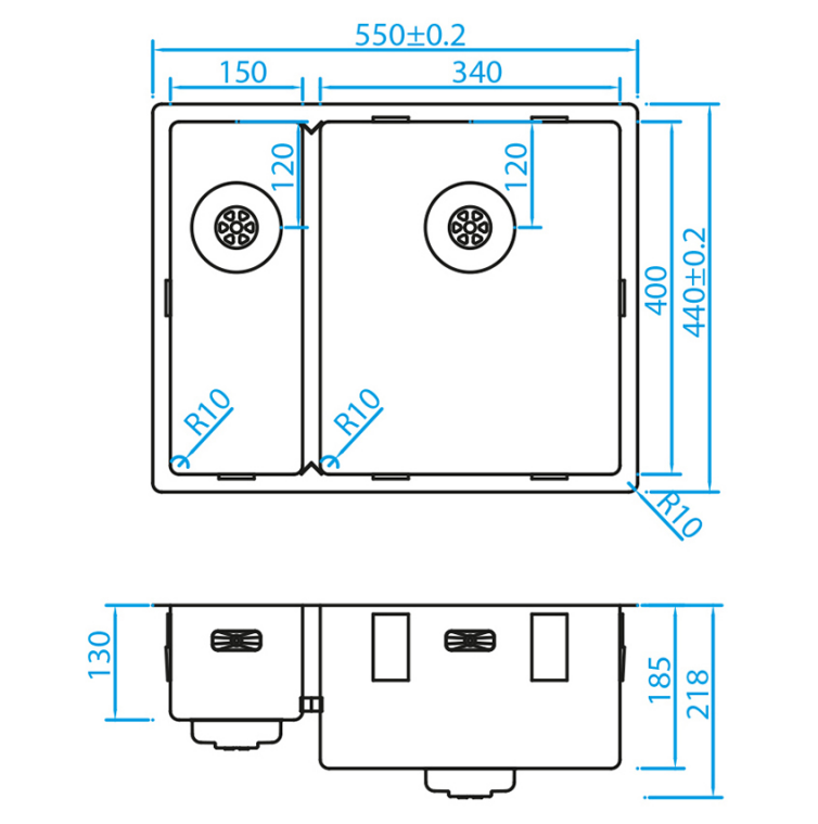 Deze spoelbak past perfect in een kast van minimaal 600 mm breed en biedt met zijn royale afmetingen (550 x 440 mm) voldoende ruimte voor dagelijks gebruik. De R10-hoekradius zorgt niet alleen voor een modern uiterlijk, maar maakt het schoonmaken van de spoelbak ook eenvoudiger. Het ontwerp omvat een handige overloop en een bijgeleverd korfplugset, zodat zowel functionaliteit als comfort gegarandeerd zijn.