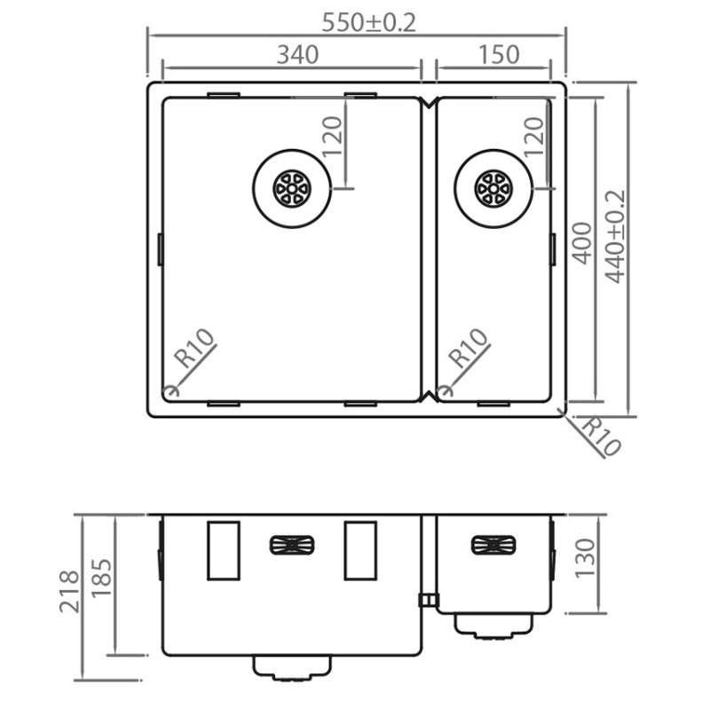 Deze spoelbak past perfect in een kast van minimaal 600 mm breed en biedt met zijn royale afmetingen (550 x 440 mm) voldoende ruimte voor dagelijks gebruik. De R10-hoekradius zorgt niet alleen voor een modern uiterlijk, maar maakt het schoonmaken van de spoelbak ook eenvoudiger. Het ontwerp omvat een handige overloop en een bijgeleverd korfplugset, zodat zowel functionaliteit als comfort gegarandeerd zijn.