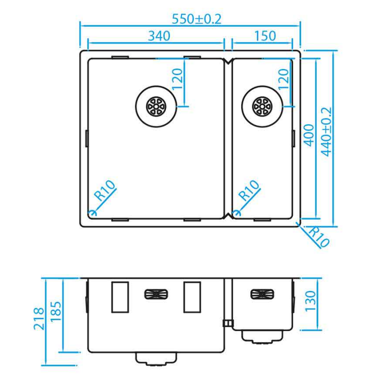 Deze spoelbak past perfect in een kast van minimaal 600 mm breed en biedt met zijn royale afmetingen (550 x 440 mm) voldoende ruimte voor dagelijks gebruik. De R10-hoekradius zorgt niet alleen voor een modern uiterlijk, maar maakt het schoonmaken van de spoelbak ook eenvoudiger. Het ontwerp omvat een handige overloop en een bijgeleverd korfplugset, zodat zowel functionaliteit als comfort gegarandeerd zijn.