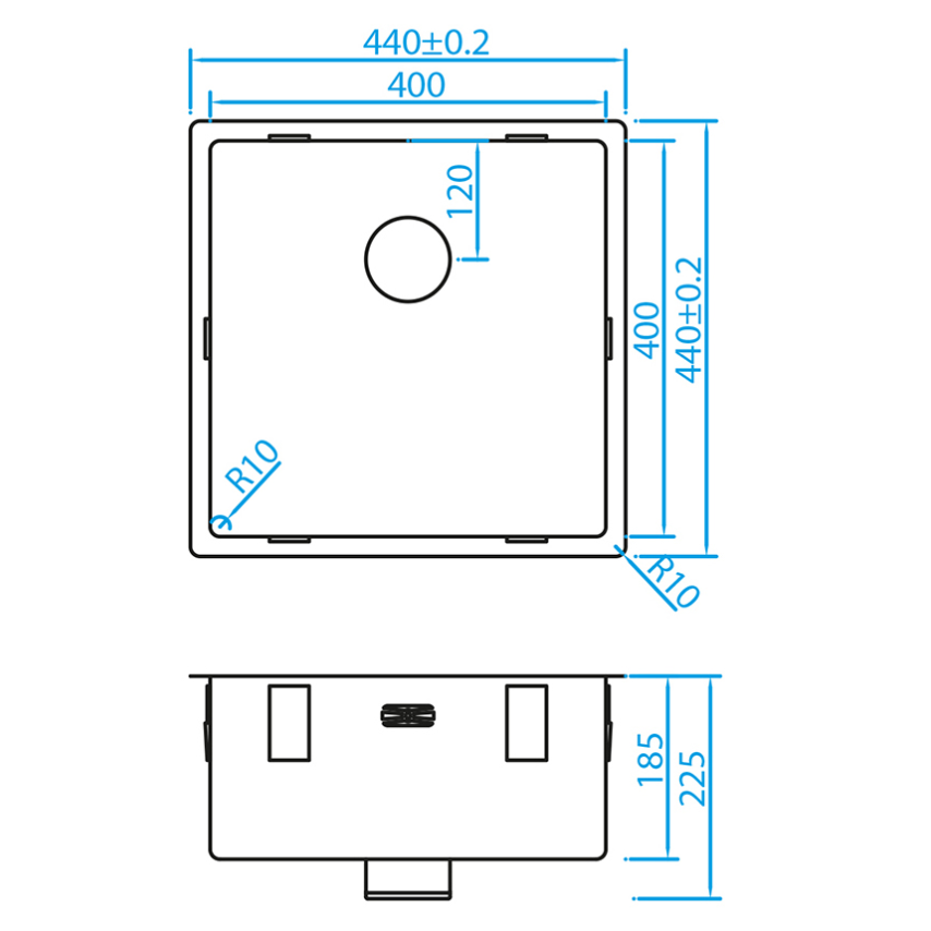Buitenmaat: 440 x 440 mm