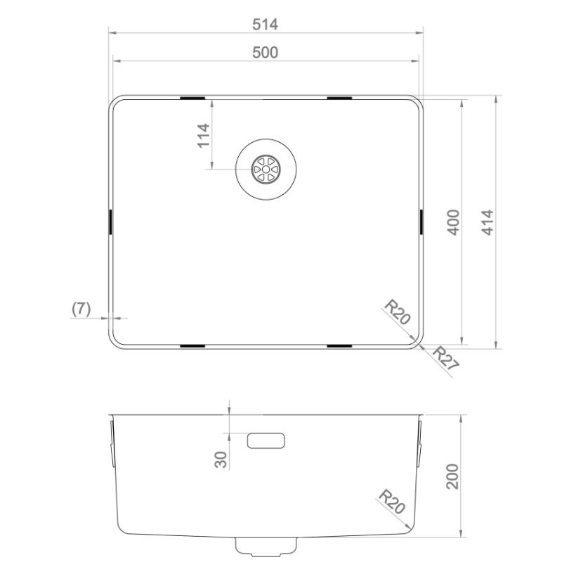 Buitenmaat: 514 x 414 mm