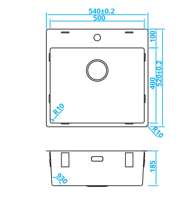 Buitenmaat: 540 x 520 mm