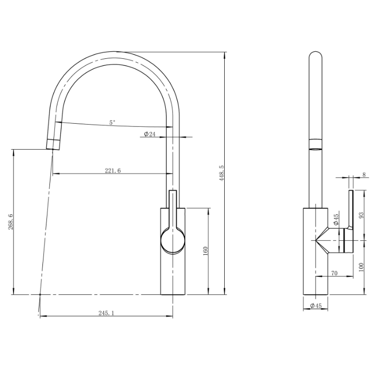 – Vaste, draaibare uitloop om elke hoek van je gootsteen te bereiken