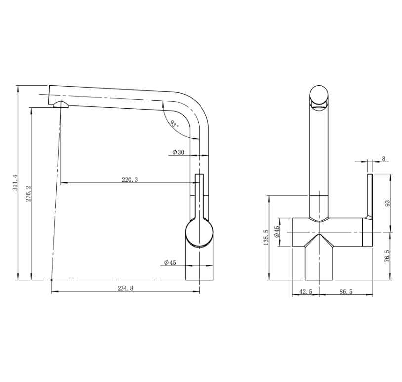 – Uitloophoogte van 311,4 mm en diepte van 220,3 mm voor optimaal gebruiksgemak