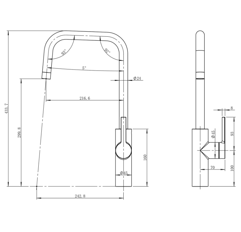 – Vaste, draaibare uitloop om elke hoek van je gootsteen te bereiken