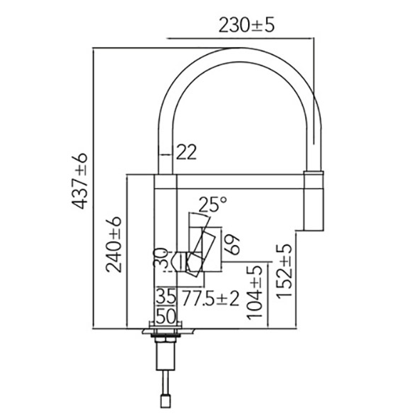 – Uitloophoogte van 437 mm en diepte van 230 mm voor optimaal gebruiksgemak
