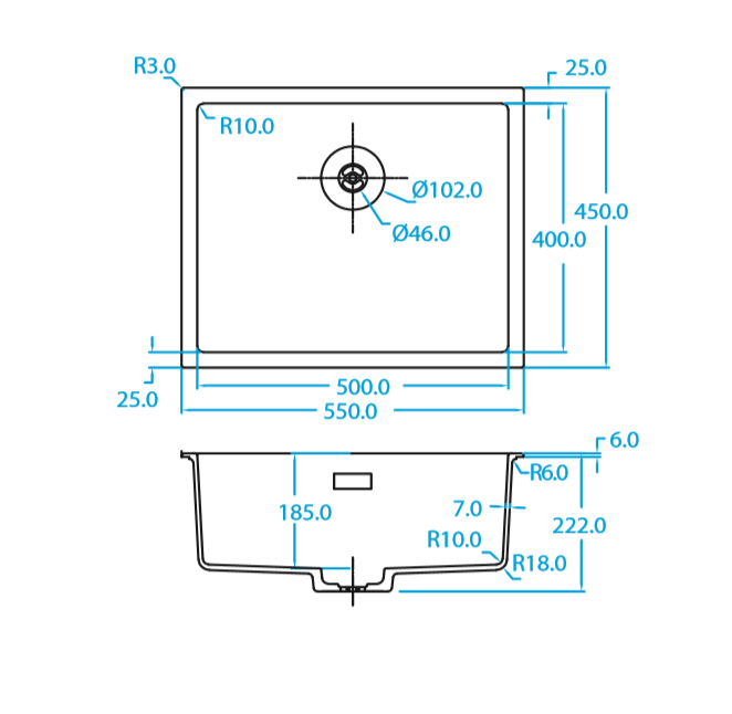 – Ruime afmetingen 550 x 450 mm voor al je afwas en groenten