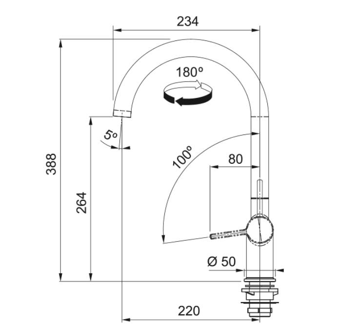 Hoogte tot uitloop: 264.00 mm