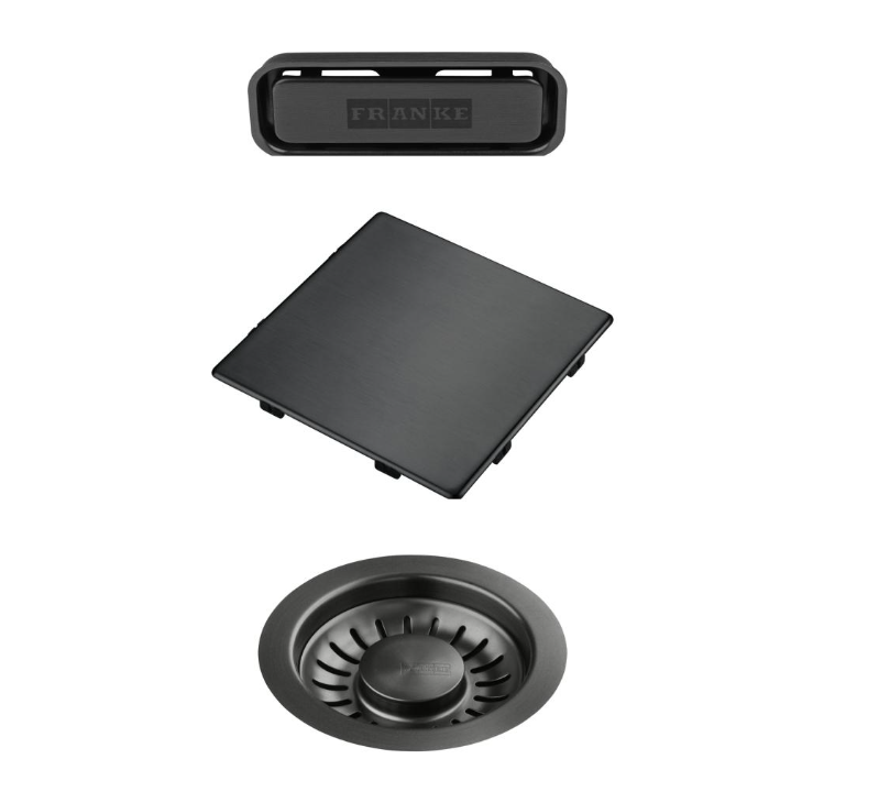 Franke kleur set in de kleur gun metal speciaal gemaakt om de Franke Kubus 2.0 granieten spoelbakken naar u wens af te maken.