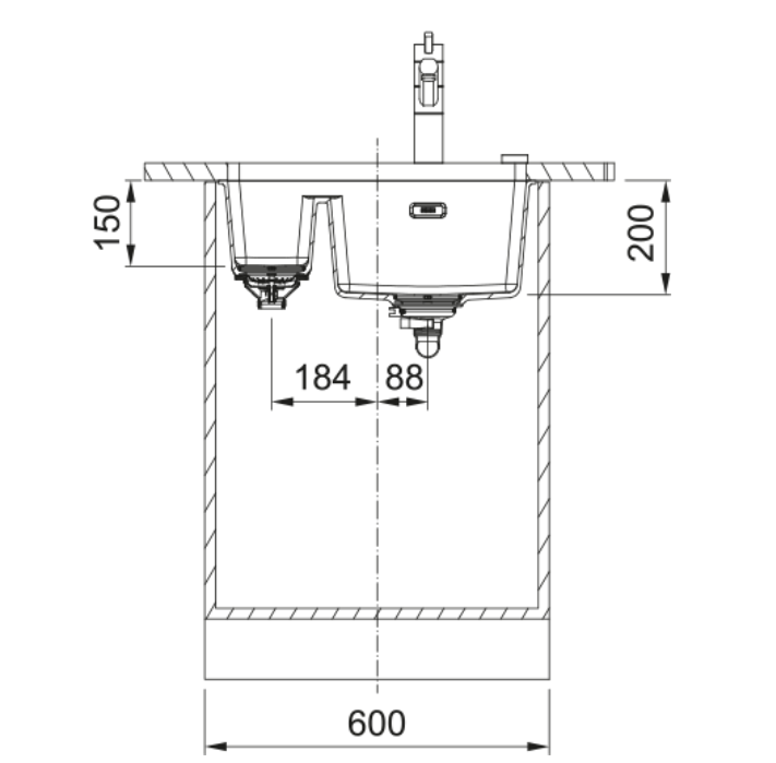 - Kastmaat 600 mm