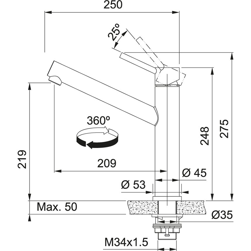 Hoogte tot uitloop: 219.00 mm
