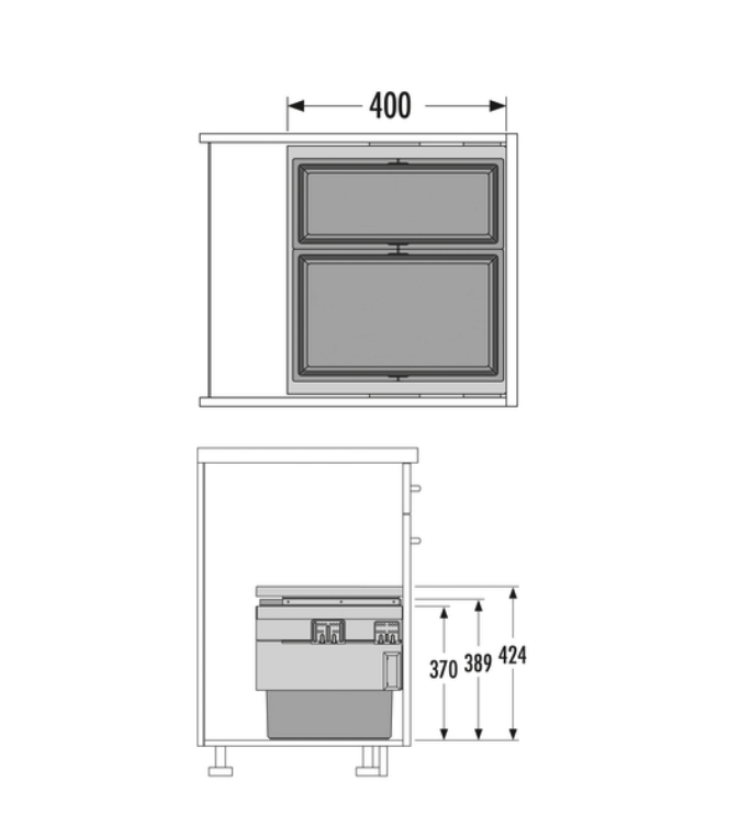 inbouwmaten (bxdxh): 462-468 x 400 x 424. Met Smooth-tec zelfsluitende en dempende geleiders