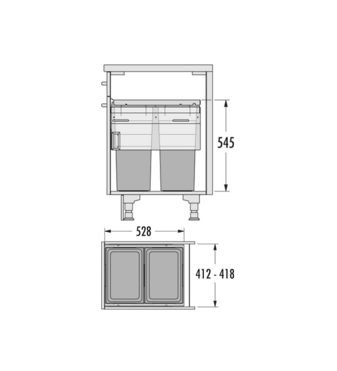 Inbouwmaten (bxdxh): 462 – 468 x 528 x 545 mm. Met zelfsluitende en dempende geleiders