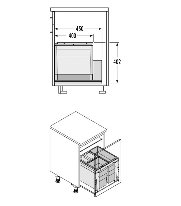 Inbouwmaten (bxdxh): 462 – 468 x 420 x 402 mm. Let op! Kastbodem dient te zijn voorzien van eigen geleiding