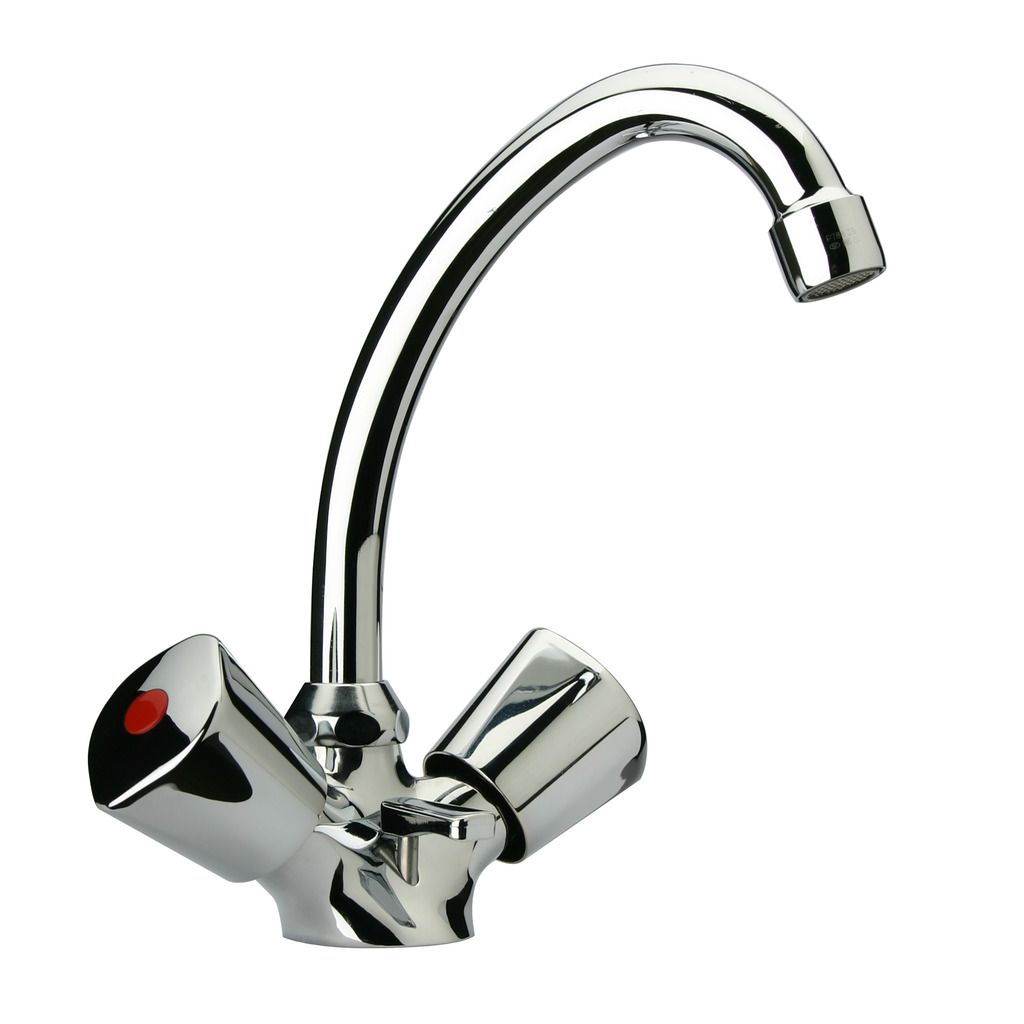 De Lanesto Cometa is een messing keukenmengkraan die met twee hendels zowel koud als warm water bedient. De kraan is verkrijgbaar in chroom.