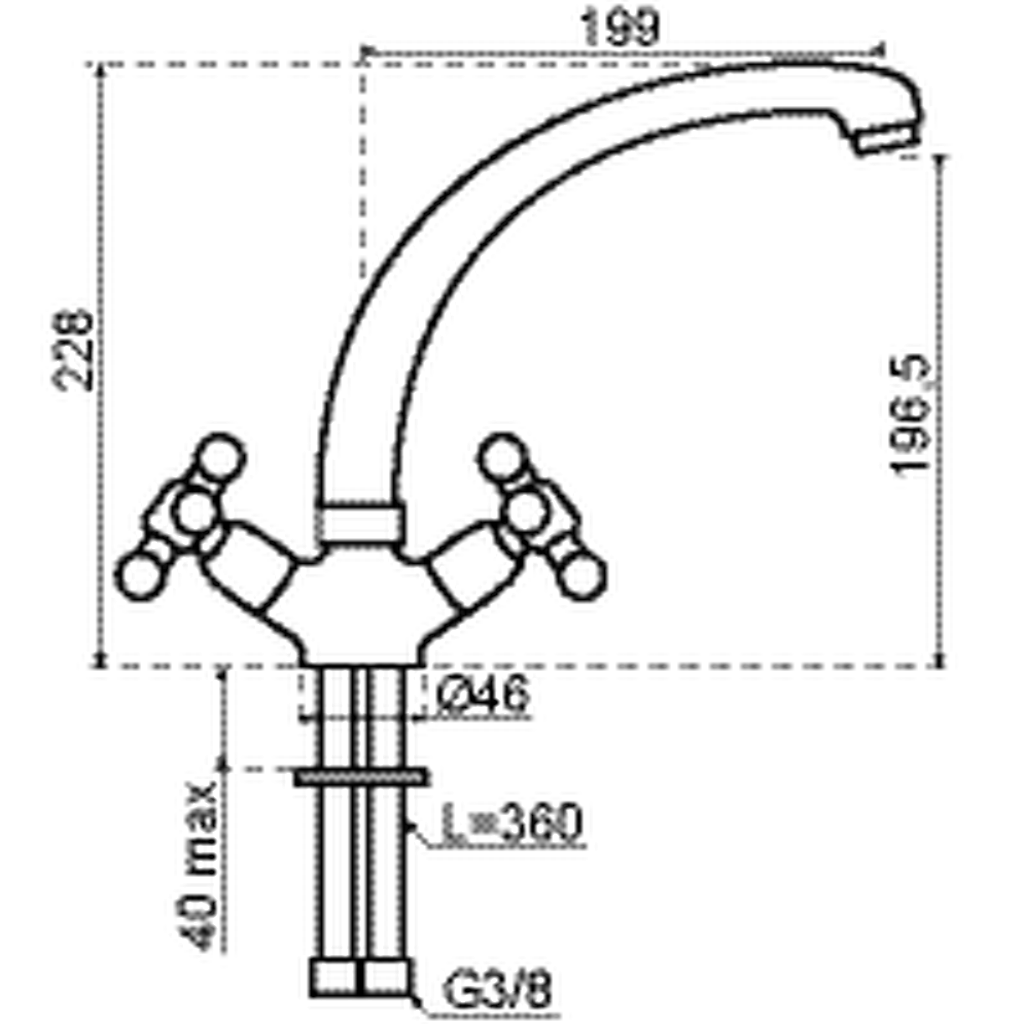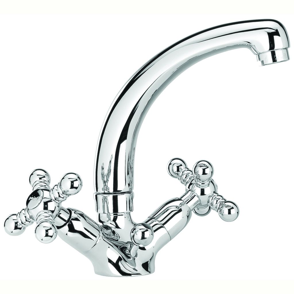 De Lanesto Principessa is een messing keukenmengkraan die met twee hendels zowel koud als warm water bedient. De kraan is verkrijgbaar in chroom.