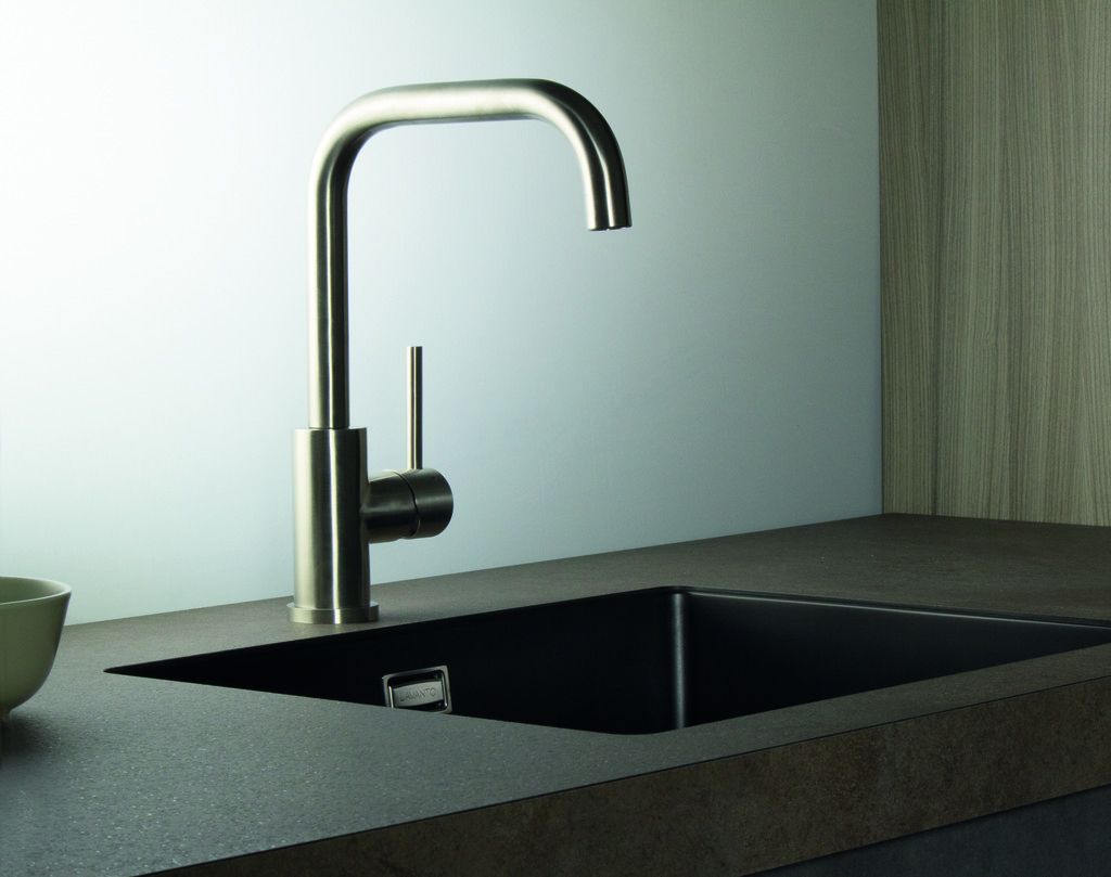 De Lanesto Quadrato is een 100% geborsteld rvs keukenmengkraan die met één hendel zowel koud als warm water bedient. De kraan is verkrijgbaar in standaard rvs en een pvd coating in de kleuren gun metal, copper en gold. Dankzij het design en de kleur kunt u alle uitvoeringen uitstekend combineren met andere artikelen zoals spoelbakken, verlichting en zeepdispensers.