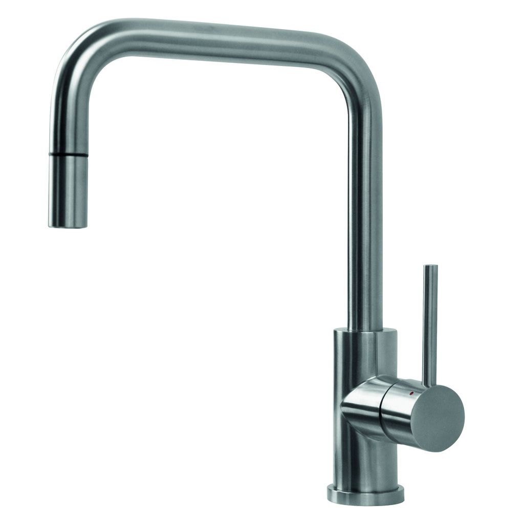 De Lanesto Quadrato met uittrekbare perlator is een 100% geborsteld rvs keukenmengkraan die met [één hendel] zowel koud als warm water bedient. De kraan is verkrijgbaar in standaard rvs en een pvd coating in de kleuren gun metal, copper en gold. Dankzij het design en de kleur kunt u alle uitvoeringen uitstekend combineren met andere artikelen zoals spoelbakken, verlichting en zeepdispensers. Het artikel is tevens verkrijgbaar met een poeder coating in de kleur zwart. Deze kraan beschikt over een uittrekbare perlator, hierdoor bereikt u eenvoudig alle hoeken van de spoelbak.