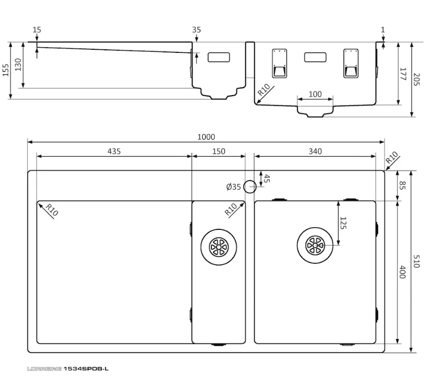 RVS spoelbak met Lorreine SuperPlug.