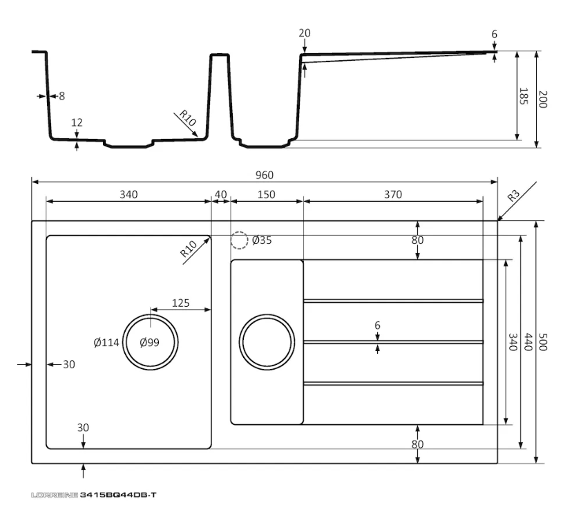 -FU = geschikt voor vlakinbouw en onderbouw (Flush, Undermount)