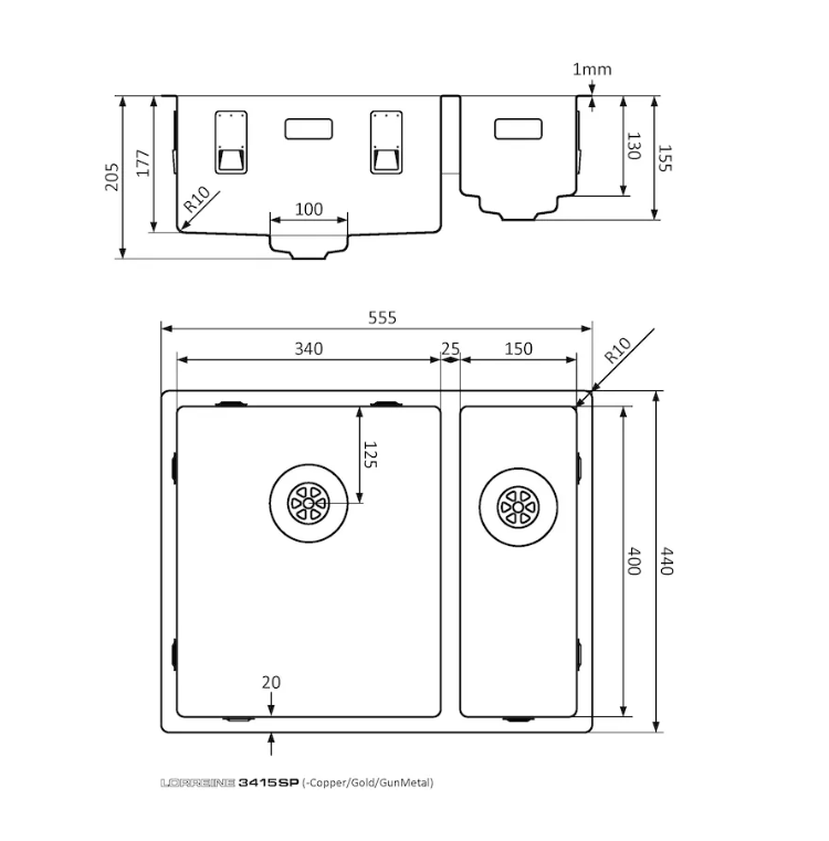 RVS spoelbak kleur afwerking in PVD coating met Lorreine SuperPlug.