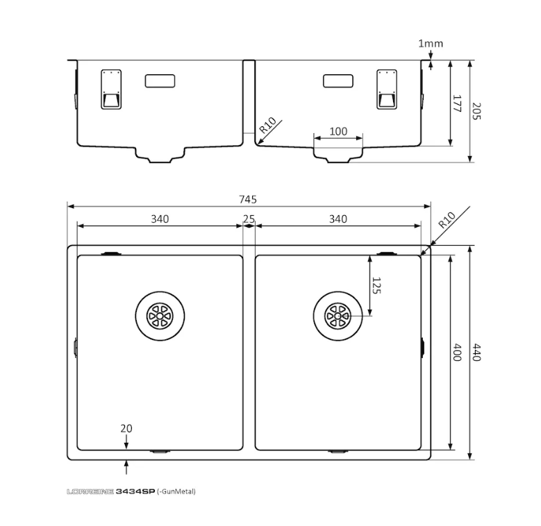 RVS spoelbak kleur afwerking in PVD coating met Lorreine SuperPlug.