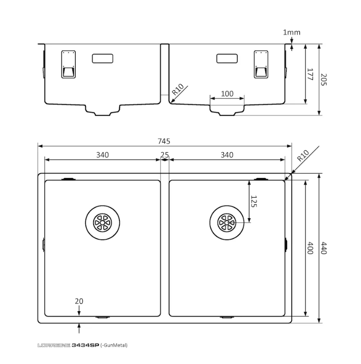 RVS spoelbak met Lorreine SuperPlug.