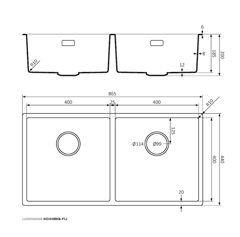 -FU = geschikt voor vlakinbouw en onderbouw (Flush, Undermount)