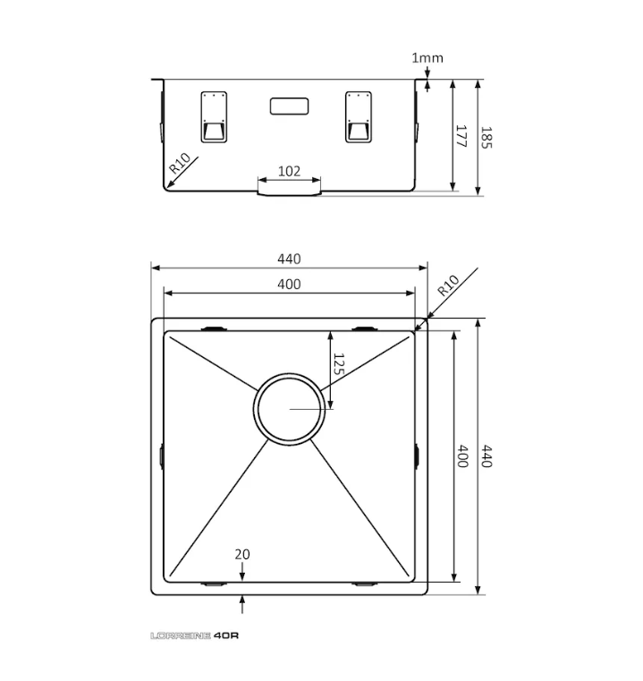 • buitenafmeting 440 x 440 mm