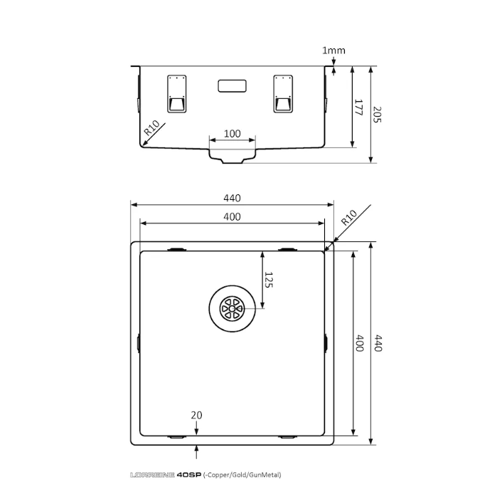 RVS spoelbak kleur afwerking in PVD coating met Lorreine SuperPlug.