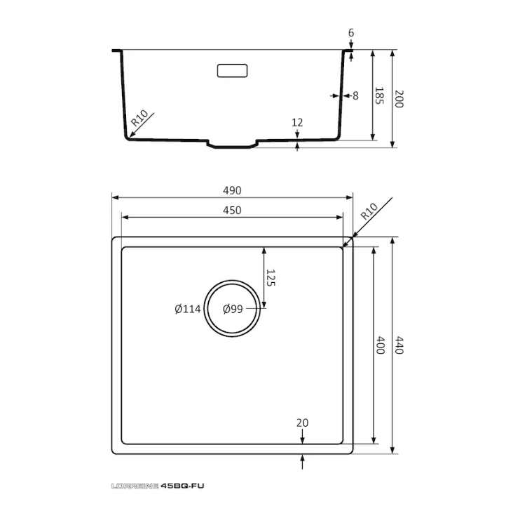 -FU = geschikt voor vlakinbouw en onderbouw (Flush, Undermount)