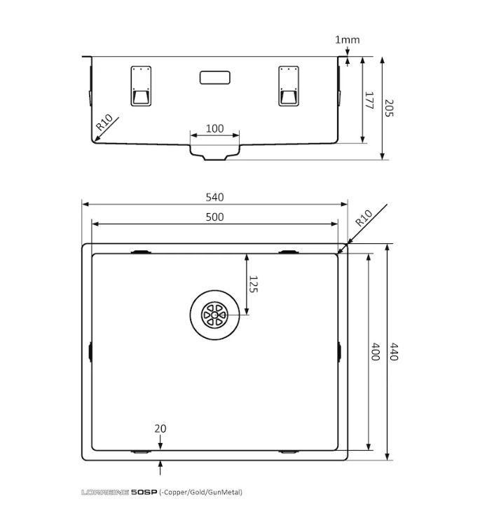 RVS spoelbak kleur afwerking in PVD coating met Lorreine SuperPlug.