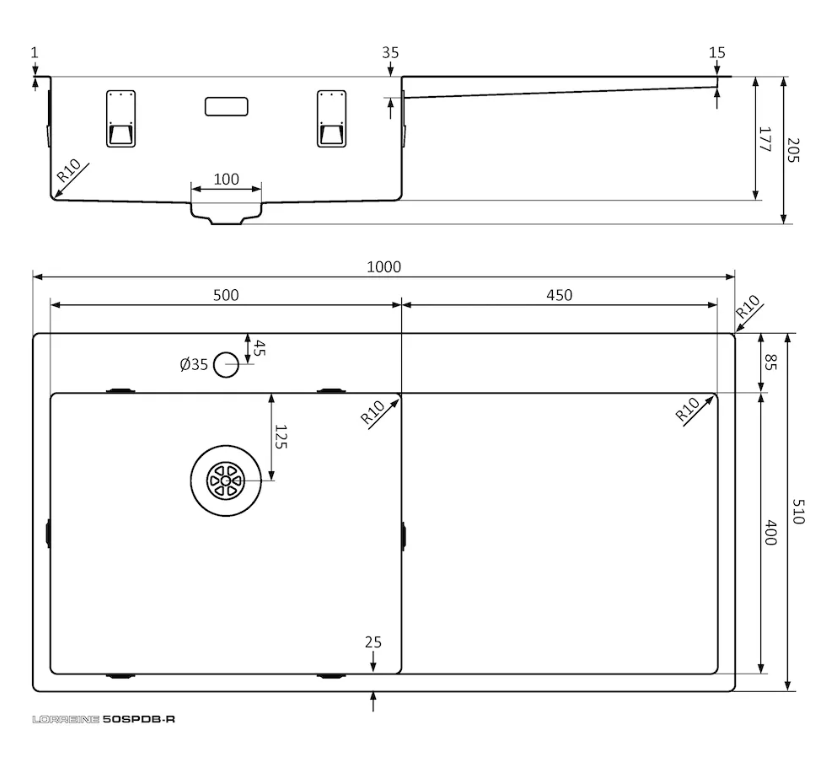 HomeRVS SpoelbakLorreine spoelbakken Lorreine 50SPDB-R Luxe Enkele Keukenspoelbak Links Met Kraangat RVS 100 x 51 Onderbouw – Vlakbouw – Opbouw